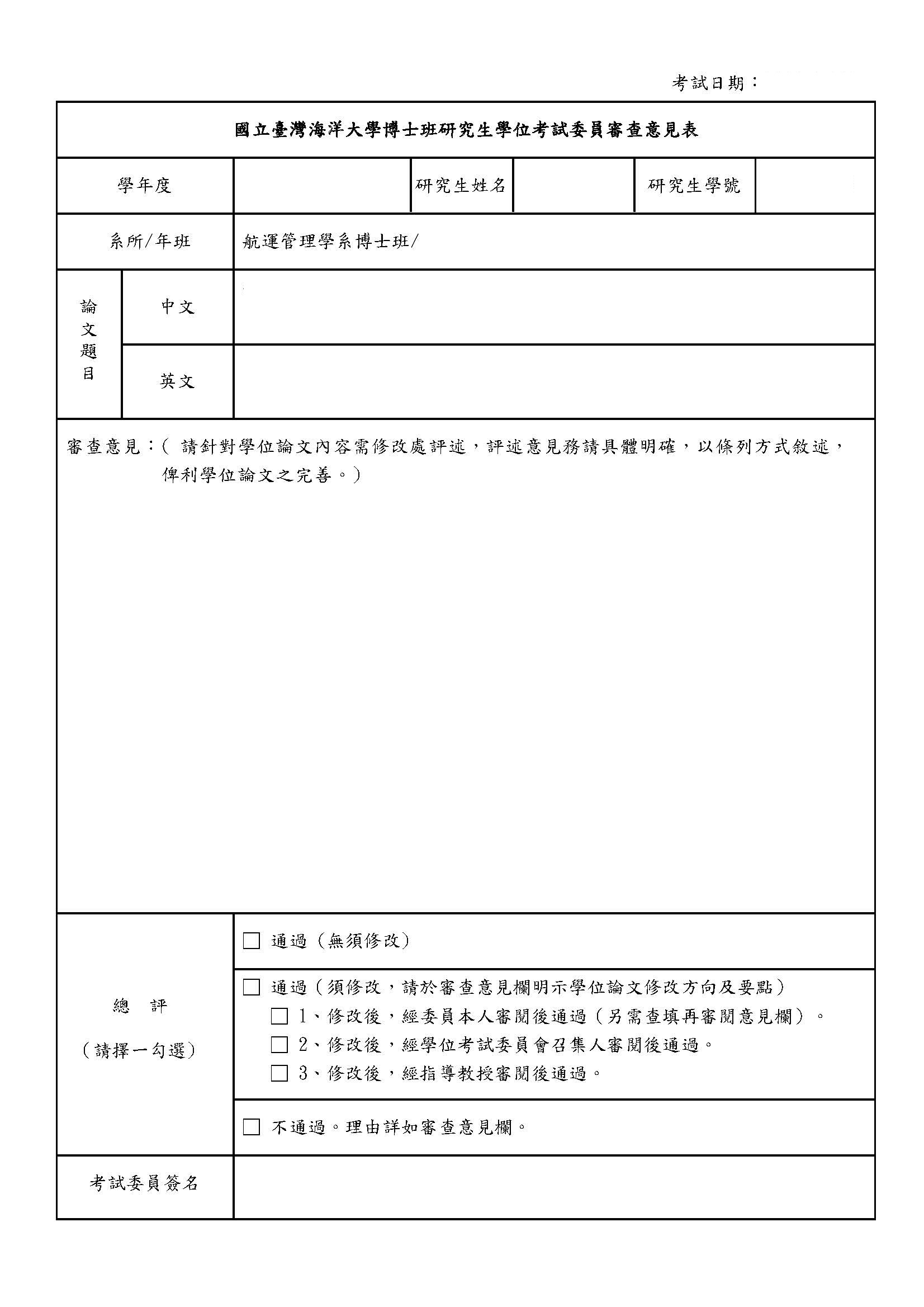 二、考試委員名冊一式兩份(於教學務系統上申請並列印),並請確認委員之最高學歷、現任單位、現職職稱是否正確。